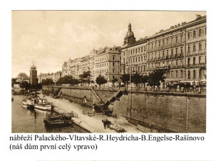 Tak nejdřív hledali byt samostatný, ale neúspěšně, takže pak zůstali bydlet u Bozděchů na Palackého nábřeží 4. Je to přímo nad přístavištěm parníků. Tehdy bylo tohle nábřeží klidná vycházková trasa, přitom ale přímo na křižovatce tramvají na Smíchov, do Podolí, na Vinohrady, na Václavské náměstí a k Národnímu divadlu. Jediné kam jsme měli špatné spojení (tj. s přestupováním, byli jsme tak rozmazlení, že to nás obtěžovalo) bylo centrum kolem Můstku a Repre. Teď s metrem je to zase naopak to nejpohodlnější, protože teď zase máme přímo pod domem stanici, ze které se dostaneme rovnou na Perštýn, na Jungmannovo náměstí a na Náměstí Republiky.)