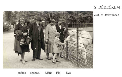 Olinka tedy už nezažila žádnou babičku a jen jednoho dědečka, a i toho jen krátce. Bylo jí dva a půl roku, když 10. září 1936 dědeček Rudolf ve svých 79 letech zemřel. Ještě o prázdninách byl s námi (i s Olinkou) v Jánských Lázních a pak se v Praze nějak nastydl, myslím, že to byl nakonec zánět pohrudnice. Nevzpomínám si, že by byl vůbec kdy stonal, nebo měl nějaký trvalý neduh jako dědeček Josef tu cukrovku. Byl pořád stejně urostlý a vzpřímený, zdatný a pohyblivý. Po babiččině smrti se vydal s tetou Elou na cestu po Slovensku, vlezli do kdejaké jeskyně a plavili se na prámu. Vzpomínám si také, jak naši vyprávěli, že dokonce se mnou v náručí vyskakoval z tramvaje (tenkrát ještě neměly zavírací dveře a směrem k Podolí měly stanici před křižovatkou u Palackého mostu, přičemž míjely náš dům, tak se z dojíždějící tramvaje vyskakovalo dřív).